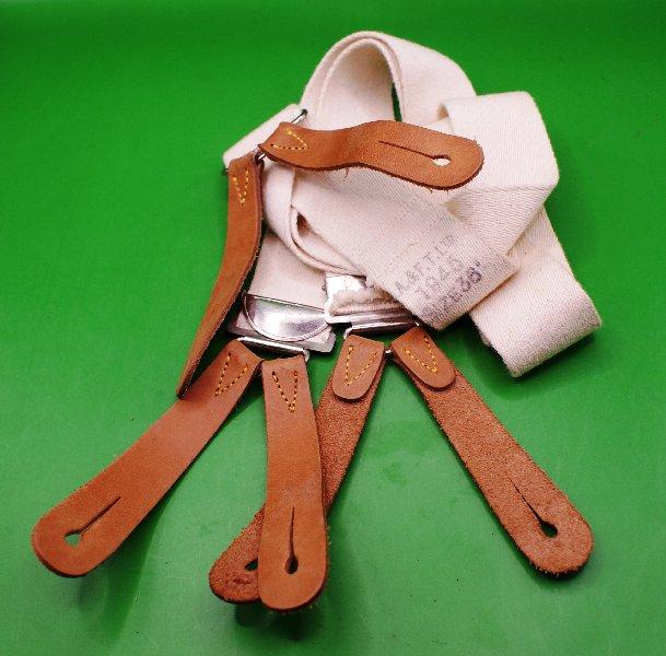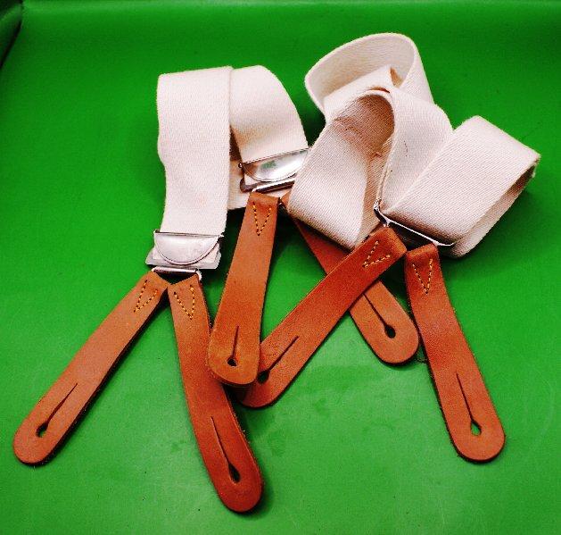 Original WWII British Army Elasticated Braces with Leather Ends. Marked and Dated. In Good Condition as Per Photo's