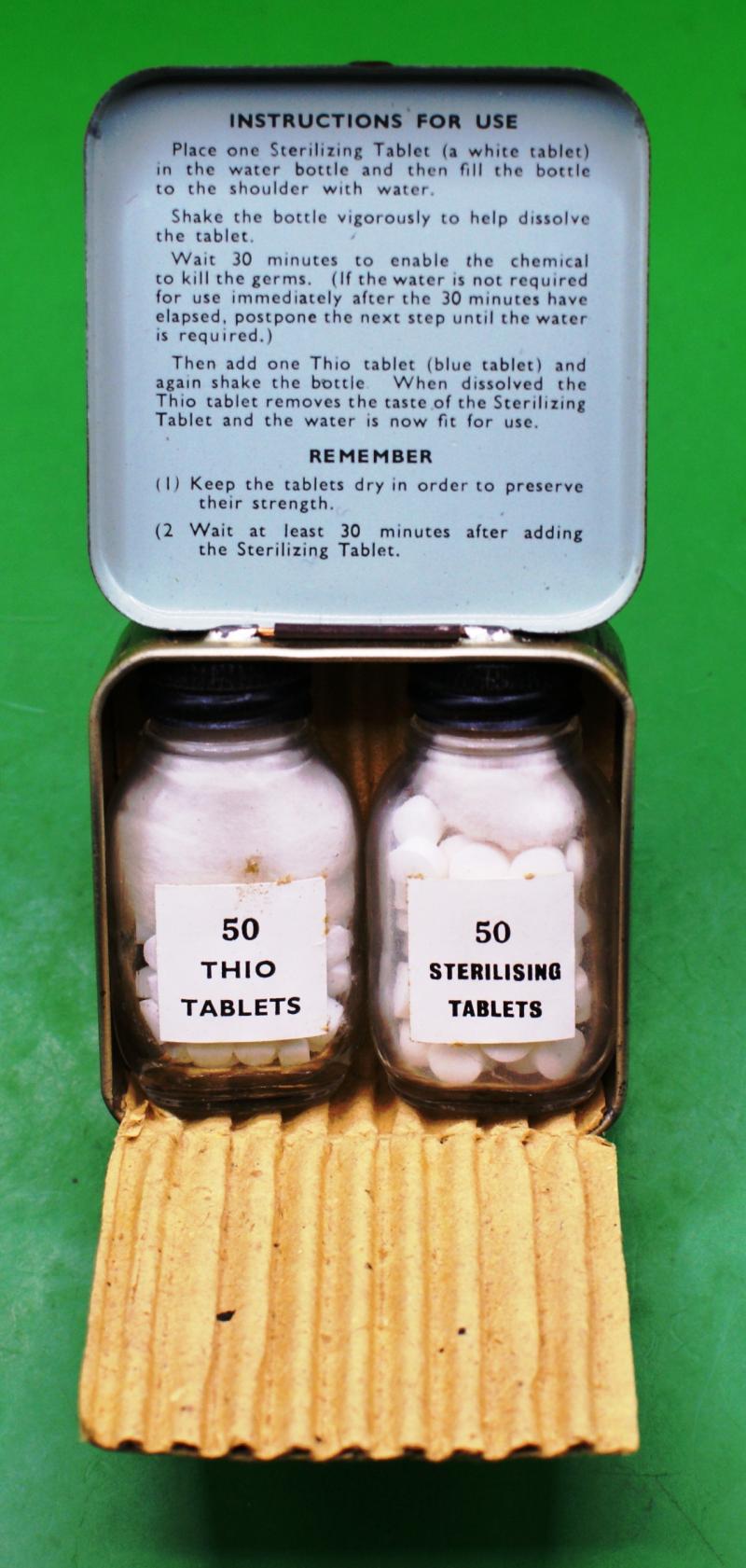 Original WWII British Water Sterilising Kit Complete With 2 Bottles With Sterilising Tablets. as Per Photo;s